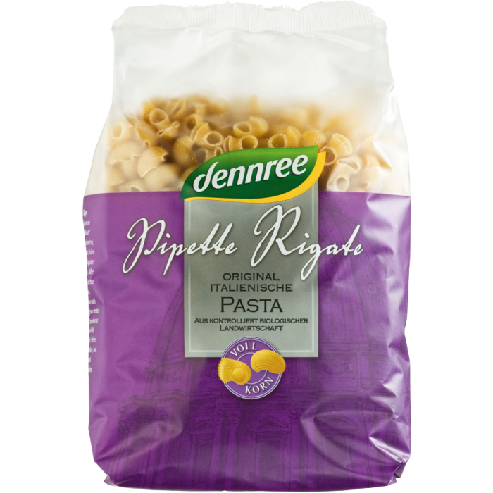 Hergestellt in Italien aus nur einer Zutat – 100% Vollkorn-Hartweizengrieß aus kontrolliert biologischem Anbau – und nach original italienischem Rezept verarbeitet, bieten sie reinen Genuss und wertvolle Nährstoffe. Ihre charakteristische, kleine und gebogene Hörnchenform mit feinen Rillen („Rigate“) macht sie ideal für kreative Pestos, würzige Tomatensoßen, Ragouts oder bunte Nudelsalate – die Form hält Saucen besonders gut fest. Mit 12,5 g Protein pro 100 g sind sie eine sättigende, vollwertige Basis für eine ausgewogene Küche. Ein Grundnahrungsmittel, das auf keinem vielseitigen Bio-Speiseplan fehlen sollte.